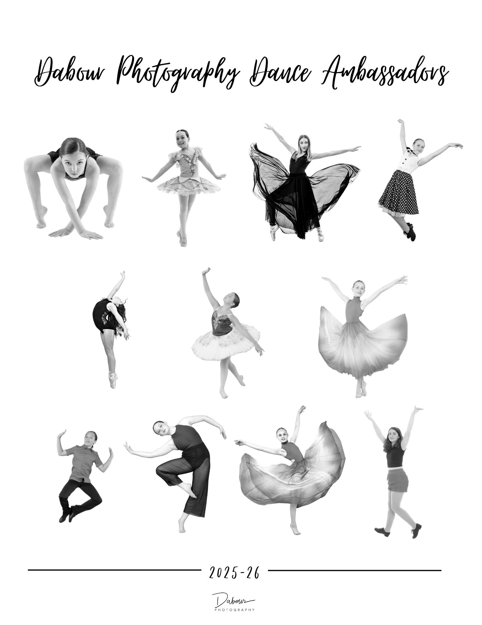 NEW for 2025-2026: Dance Ambassador program! Only accepting a LIMITED number of dancers to be part of this Dabour Photography experience.